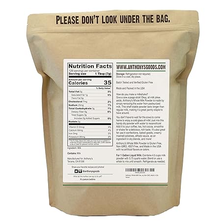 Thông tin sản phẩm Anthony's Whole Milk Powder, 2 lb, Gluten Free, Non GMO, Made in USA