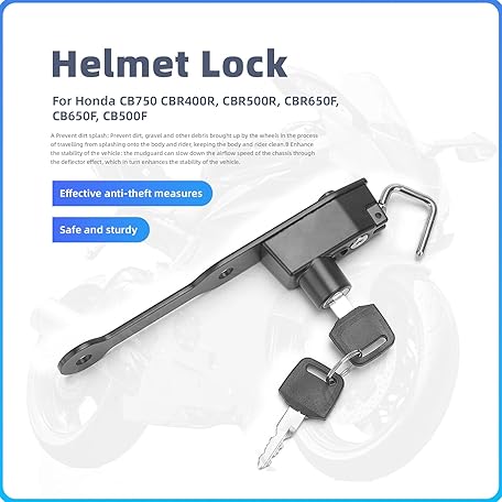 Anti Theft Helmet Lock, Motorcycle Locks Anti-Theft Helmet Security Lock for Honda CB750 CBR400R CBR500R CBR650F CB650F CB500F Motorbike Helmets Hardware Accessories, W/ 2Pcs Keys-Black