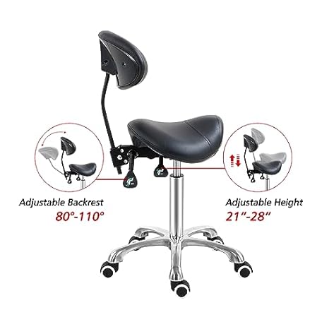 Thông tin sản phẩm Antlu Saddle Stool Chair with Back Support, Ergonomic Esthetician Stool Chair for Salon Tattoo Spa Medical Dentist Clinic (with Backrest, Black)