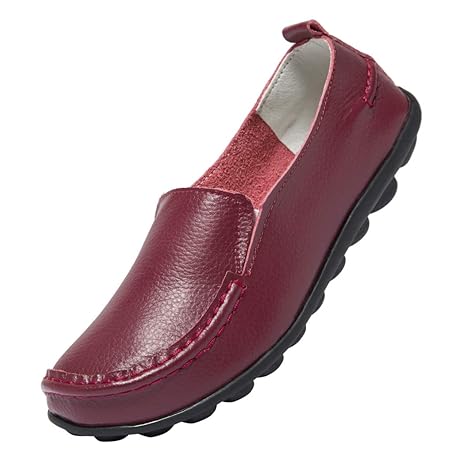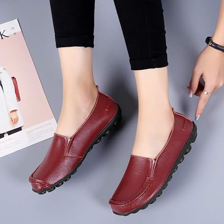 • ANYUETE Women's Leather Loafers Comfortable Flat Shoes