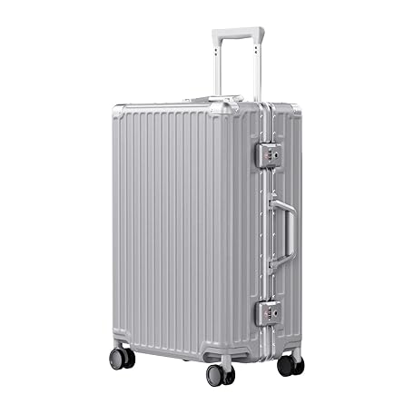 AnyZip Luggage PC+ABS Aluminum Frame Zipperless Checked Luggage Hard Shell Suitcase with TSA Lock Double Spinner Wheels 24 Inch Silver