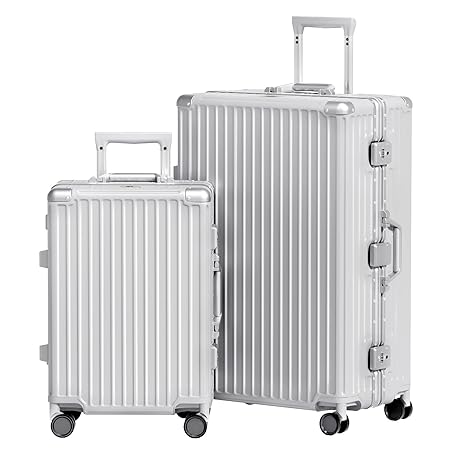 AnyZip Luggage Sets 2 Piece Aluminum Frame Carry On and Checked Suitcase PC ABS Hard Shell TSA Lock No Zipper(Silver, 20/28)