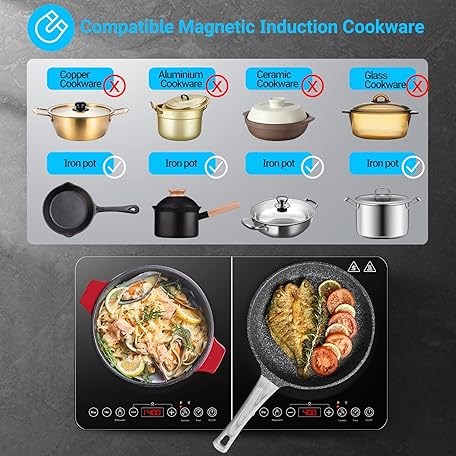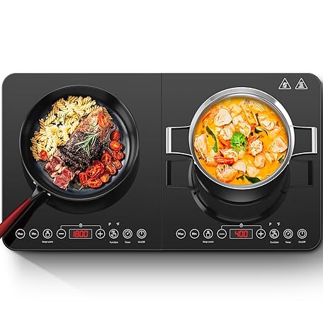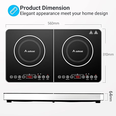 Thông tin sản phẩm Aobosi Double Induction Cooktop,Portable Induction Cooker with 2 Burner Independent Control,Ultrathin Body,10 Temperature,1800W-Multiple Power Levels,4 Hour Timer,Safety Lock
