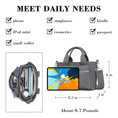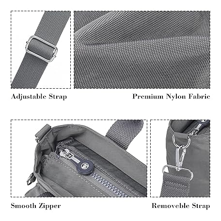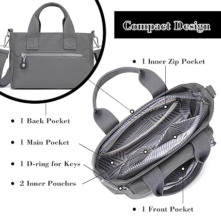 • AOCINA Small Tote Bag With Zipper Nylon Crossbody Bags for Women Multi Pocket Mini Satchel Purse Shoulder Handbags for Work