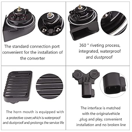 • AOLIHAN Car Horn Loud Compatible with GM/Chrysler/Ford, 12V Waterproof Snail Horns 125db High/Low Tune (Horn with Plug for Ford)