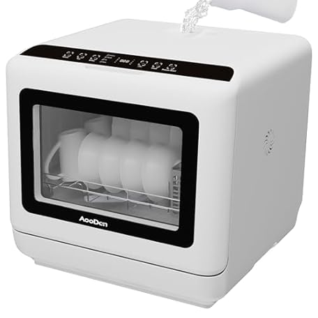 AooDen Portable Dishwasher Countertop Dishwasher with 5L Built-in Water Tank, No Hookup Needed, 5 Washing Programs, Air-dry Function, Fruit Washing, Delay Function, Mini Dishwasher for Apartment, RVs