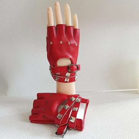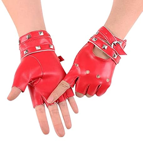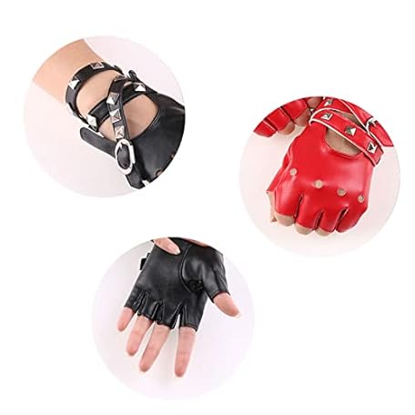 • aoozleny Women Girls Fingerless Gloves,PU Leather Biker Punk Gloves with Belt Up Closure and Rivet Design