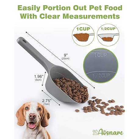 Sản phẩm Aosnare 2 PACK Dog Food Scoop,1 Cup Capacity Pet Food Scoop With Measuring Lines For Dog, Puppy and Cat (Grey) đang được bán với giá ưu đãi là $9.7991 tại nước Mỹ.