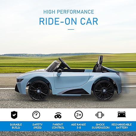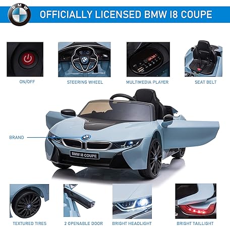 Thông tin sản phẩm Aosom Licensed BMW I8 Coupe 6V Electric Car, Kids Ride-On Car, Battery Powered Toy with Remote Control Music Horn Lights Suspension for 37-96months Old, Blue