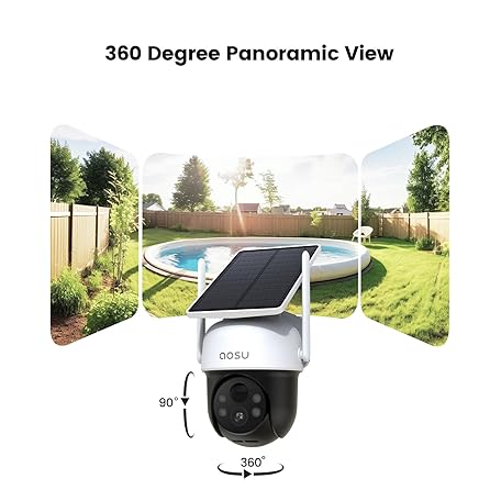 Thông tin sản phẩm aosu Solar Camera Outdoor Wireless - 100% Wire-Free Outdoor Security Camera Wireless with Fixed Solar Panel,360° Panoramic View, Human Auto Tracking, 2K Color Night Vision