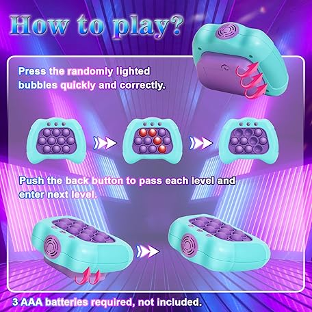 Thông tin sản phẩm AOTIBO Fast Push Machine Light Up Fidget Toys for Kids Adults, Handheld Game for Kids 3-12, Quick Push Bubble Stress Toy, Sensory Toys Travel Games, Xmas Birthday Gifts for Boys Girls (Blue - Purple)
