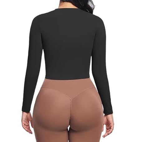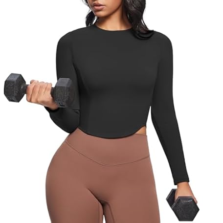 • Aoxjox Long Sleeve T-Shirt for Women GEO Seamlines Padded Baby Tee Workout Crop Top