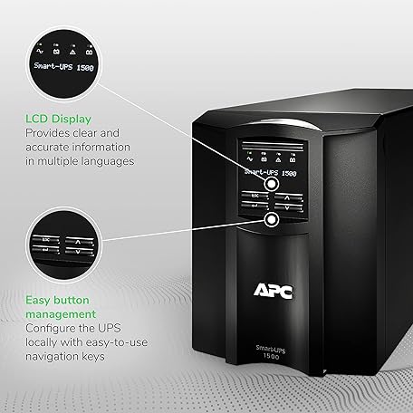 Thông tin sản phẩm APC 1500VA Smart UPS with SmartConnect, SMT1500C Sinewave UPS Battery Backup, AVR, 120V, Line Interactive Uninterruptible Power Supply