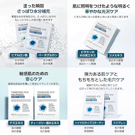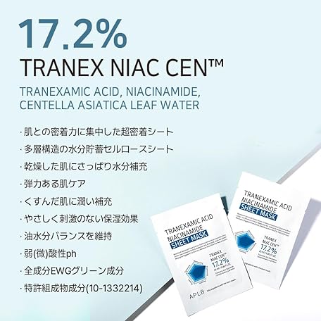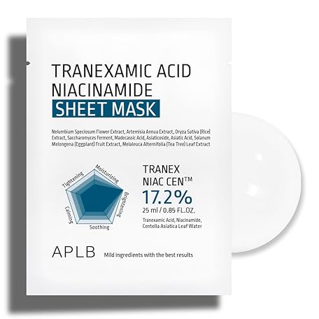APLB Tranexamic Acid Niacinamide Sheet Mask 10pcs | TRANEX NIAC CEN™ 17.2% 0.85 FL.OZ/Korean Skincare, Long lasting hydration, Blemish Care, Helps with skin discoloration
