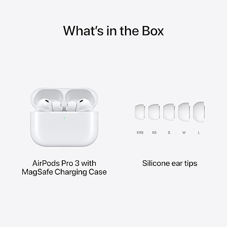 Thông tin sản phẩm Apple AirPods Pro 3 Wireless Earbuds, Active Noise Cancellation, Live Translation, Heart Rate Sensing, Hearing Aid Feature, Bluetooth Headphones, Spatial Audio, High-Fidelity Sound, USB-C Charging