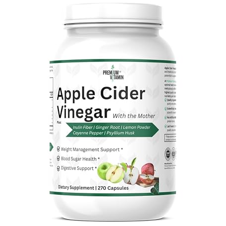 • Apple Cider Vinegar Capsules, 1575mg, 270 Count, Extra Strength, Non-GMO, Gluten Free
