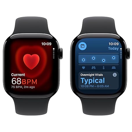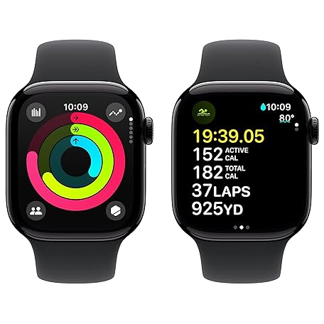 Apple Watch Series 10 (GPS, 42MM) Jet Black Aluminum Case with Black Sport Band, M/L (Renewed)