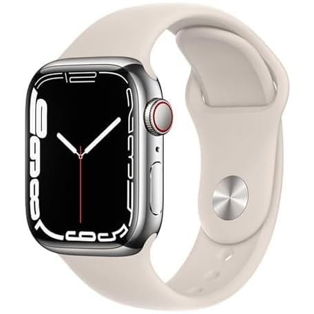 • Apple Watch Series 7 (GPS, 41MM) Silver Stainless Steel Case with Starlight Sport Band (Renewed)