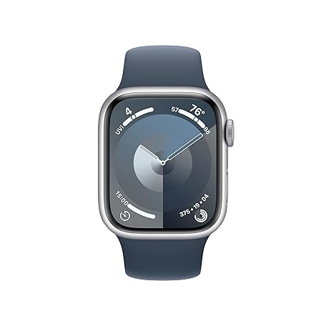 Thông tin sản phẩm Apple Watch Series 9 [GPS 41mm] Smartwatch with Storm Blue Aluminum Case with Silver Sport Band M/L. Fitness Tracker, Blood Oxygen & ECG Apps, Always-On Retina Display