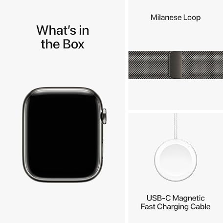 Thông tin sản phẩm Apple Watch Series 9 [GPS + Cellular 45mm] Smartwatch with Graphite Stainless Steel Case with Graphite Milanese Loop. Fitness Tracker, ECG Apps, Always-On Retina Display