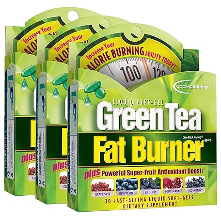 Applied Nutrition Green Tea Fat Burner - 30 Liquid Soft-Gels, Pack of 3 - Increases Calorie Burning & Supplies Powerful Antioxidants - 45 Total Servings