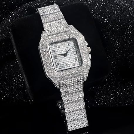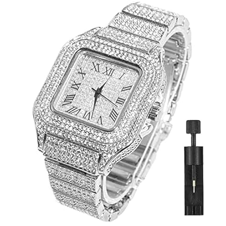 Sản phẩm Apzzic Diamond Iced Out Watch CZ Gold Plated 40mm Width Roman Numerals Dial Quartz Wristband Watch for Men Women đang được bán với giá ưu đãi là $15.2491 tại nước Mỹ.