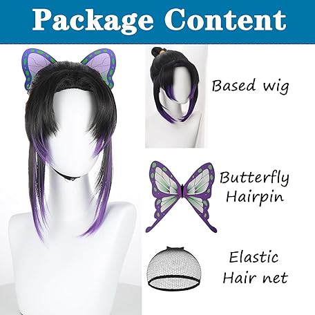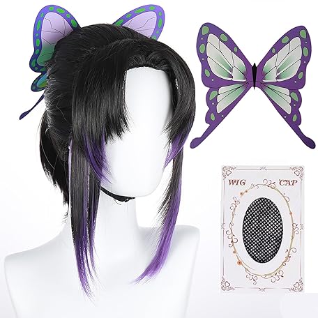 Sản phẩm Aqnhec Shinobu Cosplay Wig with Butterfly Clips Cosplay Wig with Ponytail Anime Wig with Wig Cap for Theme Party, Cosplay Show,Halloween Costume Party(Black & Purple) đang được bán với giá ưu đãi là $22.8791 tại nước Mỹ.