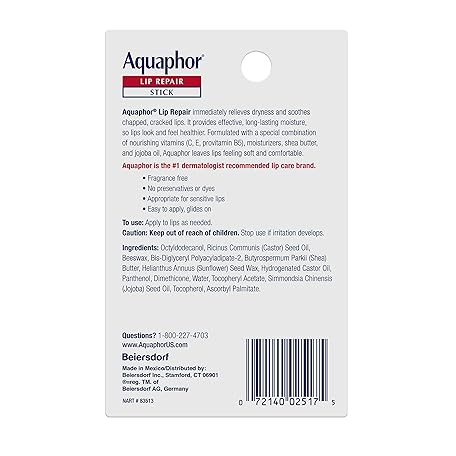 Thông tin sản phẩm Aquaphor Lip Repair Stick, Moisturizing Lip Balm Pack, Relieves Dryness, Holiday Gifts for Self Care, 0.17 Oz Stick, Pack of 2