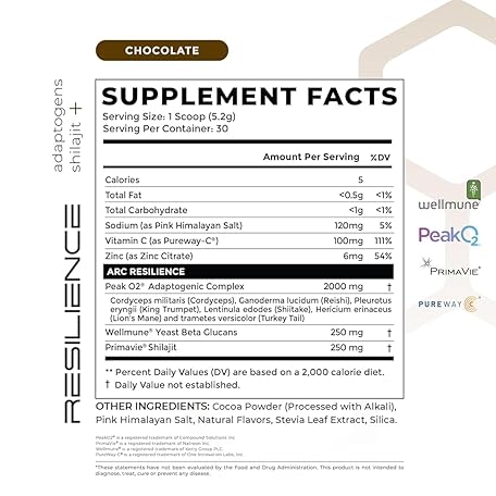ARC Resilience Mushroom Powder – Boost Focus, Energy & Immunity Naturally with Lion’s Mane, Cordyceps & Reishi – Supports Mental Clarity, Peak Performance & Stress – Rich Chocolate Flavor, 30 Servings
