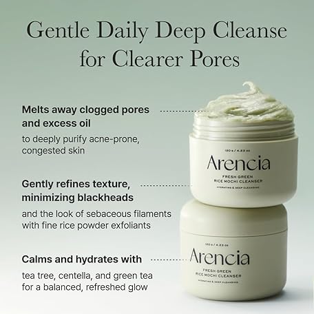 Thông tin sản phẩm ARENCIA Korean Rice Mochi Face Cleanser - Face Wash, Gentle Scrub All in One for Deep Cleansing, Moisturizing, Pore Minimizing, Acne-Prone Skin, Removing Blackhead with Rice Water & Green Tea