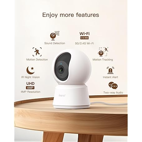 Thông tin sản phẩm ARENTI 5G Security Camera Indoor, 4MP Pet Camera with Speaker for Dog/Cat, Baby Monitor with Phone App, Dual-Band WiFi, Auto Tracking, Super Night Vision, 2-Way Talk, Cloud & SD Card Storage