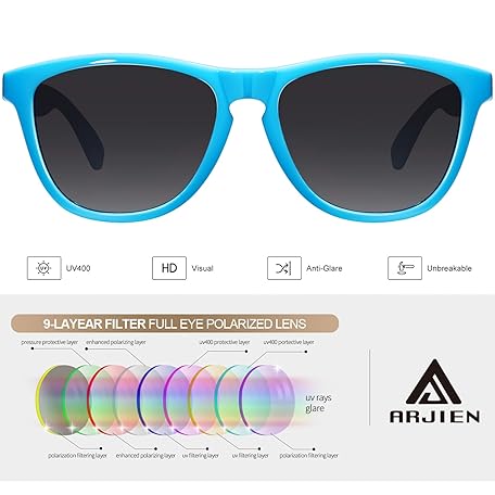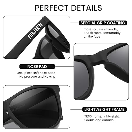 • Arjien Square Polarized Sunglasses for Women Men, UV400 Protection, Ideal for Running Golf Driving, Travel Beach Essentials
