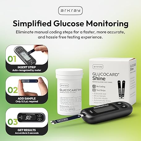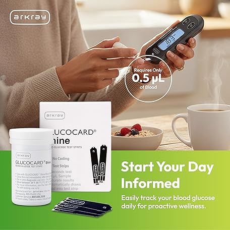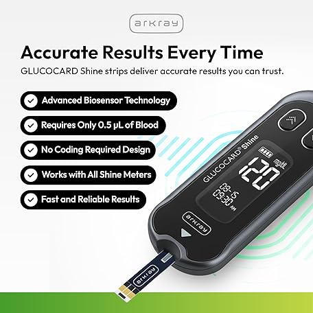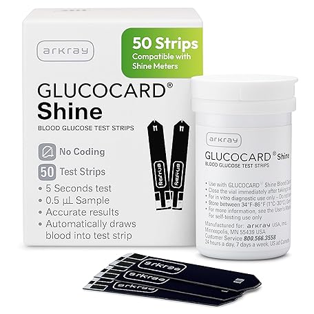 Thông tin sản phẩm ARKRAY GLUCOCARD Shine Blood Glucose Test Strips – No Coding Required, Fast 5-Second Results, 0.5 Microliter Sample Size – Compatible with GLUCOCARD Shine Blood Glucose Meters, 50 Count