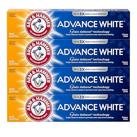 Thông tin sản phẩm ARM & HAMMER Advance White Toothpaste, Teeth Whitening Baking Soda Toothpaste with Stain Defense Technology and Fluoride, Clean Mint Flavor, 6.0 Oz (4 Pack)