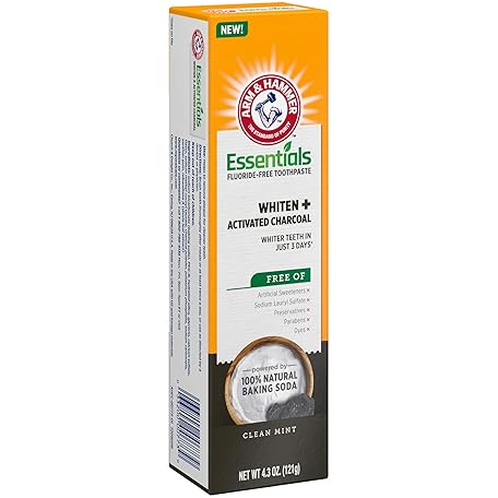 Thông tin sản phẩm ARM & HAMMER Essentials Fluoride-Free Toothpaste, Whitening + Activated Charcoal Toothpaste, 4 Pack of 4.3oz Tubes, Clean Mint, 100% Natural Baking Soda
