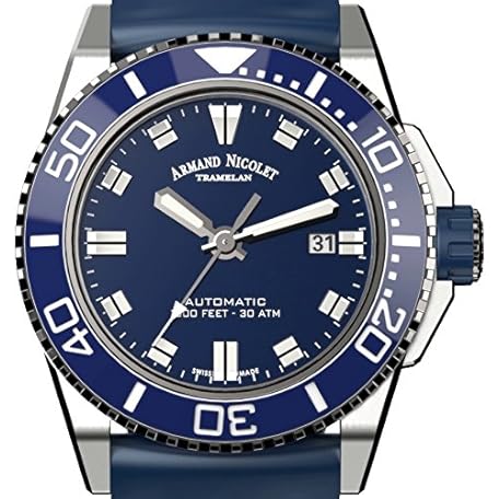 Armand Nicolet Men's Diver Automatic Watch Blue with Rubber Bracelet A480AGU-BU-GG4710U