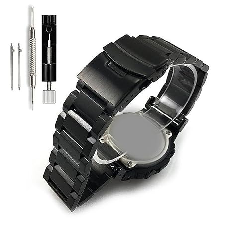 ARMER STRAPS Black Stainless Steel Metal Replacement Watch Band Compatible With Casio G-Shock Series GA-2100 DW-5600 G-5600 GW-5600 DW-6900 G6900 G-100 DW-9052 G-101 G-2110 G-2300 G-2310 G-8900 GA-100 GA-110 GA-150 GA-200 GD-120 GR-8900 GW-2310 GW-8900 GW-B5600 GW-B6900