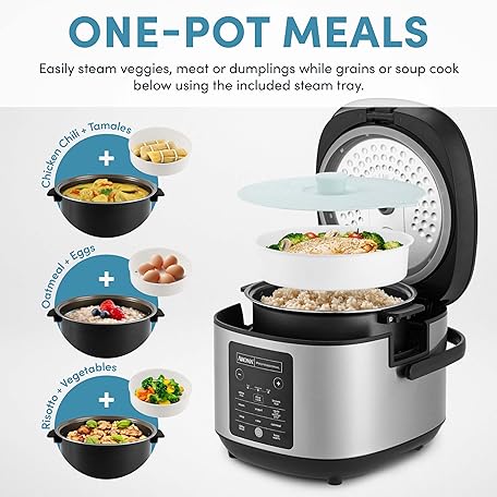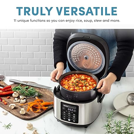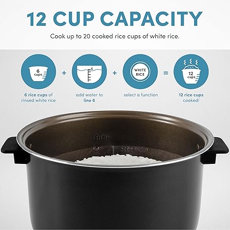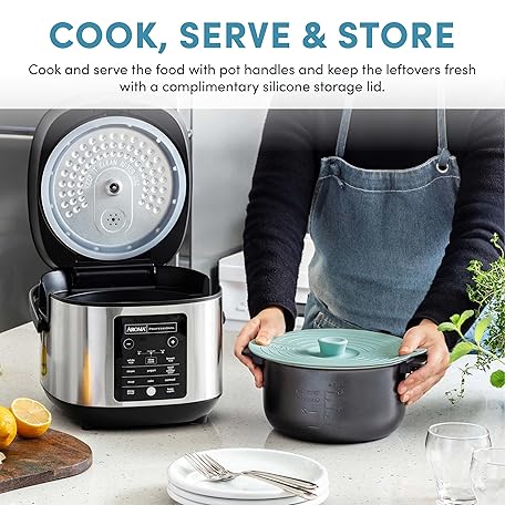 Thương hiệu AROMA là cái tên nổi tiếng được rất nhiều khách hàng trên thế giới chọn lựa. Với kiểu dáng đẹp mắt, sang trọng, sản phẩm AROMA 12-Cup (Cooked) Slow Cook Rice Cooker and Brown Rice Cooker with Lift-Out Pot Handles and Silicone Storage Lid — PFAS-Free CoreCoat™ Ceramic là sự lựa chọn hoàn hảo nếu bạn đang tìm mua một món cho riêng mình.