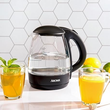 Sản phẩm AROMA 1.2L / 5-Cup Glass Electric Kettle with Cordless Pouring, Trigger-Release Lid, Automatic Shut-off, Black (AWK-151B) đang được bán với giá ưu đãi là $38.1391 tại nước Mỹ.