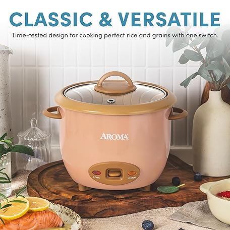 • AROMA® 6-Cup (Cooked) One-Touch Pot Style Rice Cooker with CoreCoat™ PFAS-Free Nonstick Ceramic Surface (1.5 Quarts)