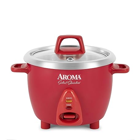 Thông tin sản phẩm Aroma Housewares Select Stainless Rice Cooker & Warmer with Uncoated Inner Pot, 6-Cup(cooked)/ 1.2Qt, ARC-753SGR, Red