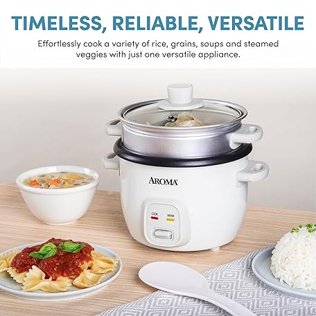 Thông tin sản phẩm AROMA® Rice Cooker, 2-Cup (Uncooked) / 4-Cup (Cooked), Steamer, Grain Cooker, Soup Maker, Oatmeal Cooker, Auto Keep Warm, 1 Qt, White, ARC-302-1NG