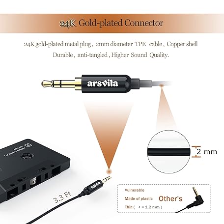 Sản phẩm arsvita Car Audio Cassette to Aux Adapter, 3.5 MM Auxillary Cable Tape Adapter đang được bán với giá ưu đãi là $9.7991 tại nước Mỹ.