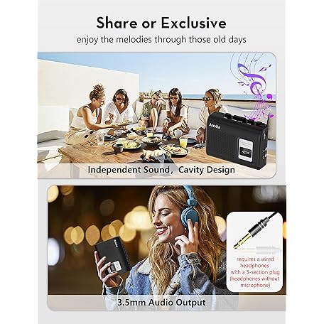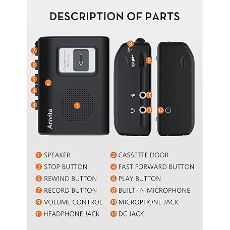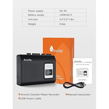 Thông tin sản phẩm Arsvita Walkman Cassette Player, Portable Tape Recorder, Build-in Speaker and Microphone, Black