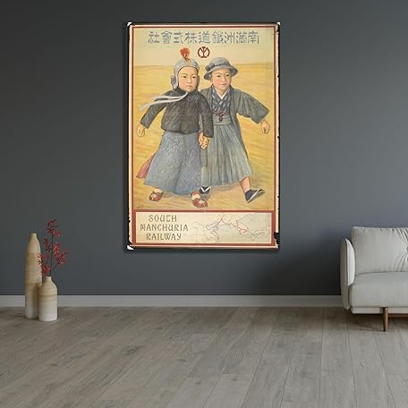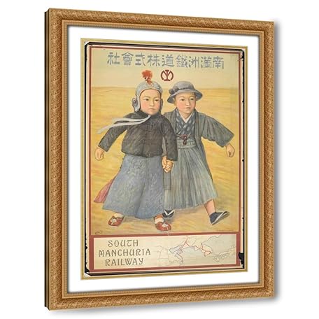 ArtDirect Minami Manshu Tetsudo Kabushiki Kaisha = South Manchuria Railway (Two Boys) Custom Framed Art Print Giclee Print or Canvas Options with Various Sizes and Customization by Nagahara Kōtarō (aka Shisui)