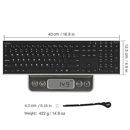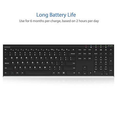 Sản phẩm Arteck 2.4G Wireless Keyboard Stainless Steel Ultra Slim Full Size Keyboard with Numeric Keypad for Computer/Desktop/PC/Laptop/Surface/Smart TV and Windows 10/8/ 7 Built in Rechargeable Battery đang được bán với giá ưu đãi là $39.2291 tại nước Mỹ.