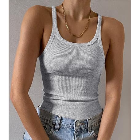 • Artfish Women's Sleeveless Tank Top Form Fitting Scoop Neck Ribbed Knit Basic Cami Shirts