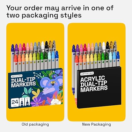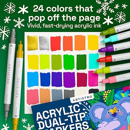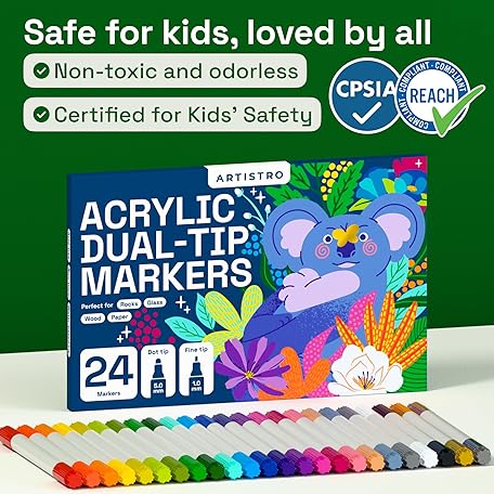 Thông tin sản phẩm ARTISTRO 24 Acrylic Paint Markers for Rock, Fabric, Wood, Glass, Craft, Decoration - Dual-Tip Paint Pens - Stocking Stuffers, Christmas Gift Idea for Teens, Grandkids, Kids - Art Supplies