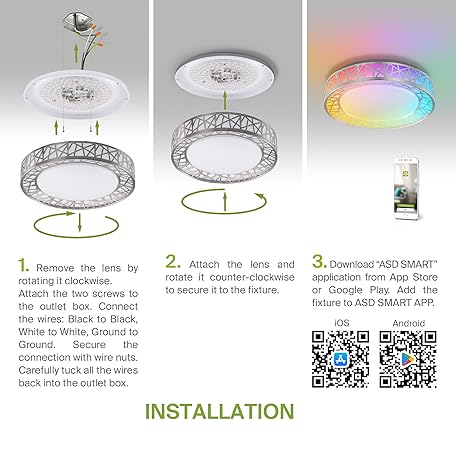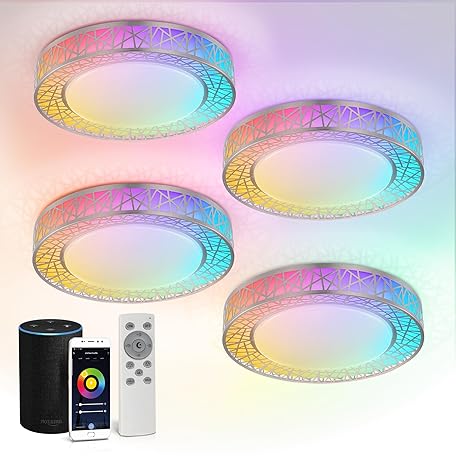 • ASD 16 Inch Smart RGBW Flush Mount Ceiling Light with Remote - Brushed Nickel 28W 120V 2700-6500K Dimmable Ceiling Light Fixture, WiFi App Control RGB Lights, Alexa & Google Assistant - ETL, 4 Pack