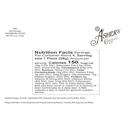 Thông tin sản phẩm Asher's Chocolates, Milk Chocolate Almond Bark, Small Batches Sweet and Salty Candy with Almonds, Family Owned Since 1892 (1 Pound, Milk Chocolate)